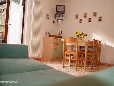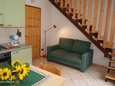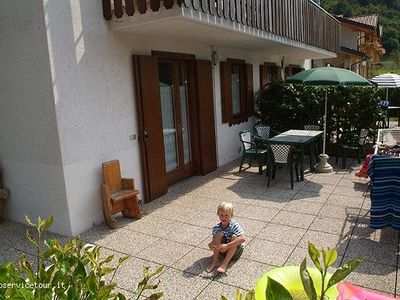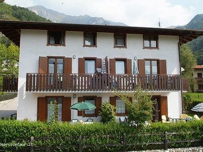 APPARTAMENTI AL PRIMO PIANO : ca 60 mq - su 2 piani - 5 pers. atrio - soggiorno con angolo cottura, TV Sat, cassaforte - bagno con doccia, phon, balcone con mobili da giardino e vista lago, al 2°P mansarda 1 stanza a 3 letti, 1 stanza matrimoniale -