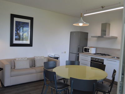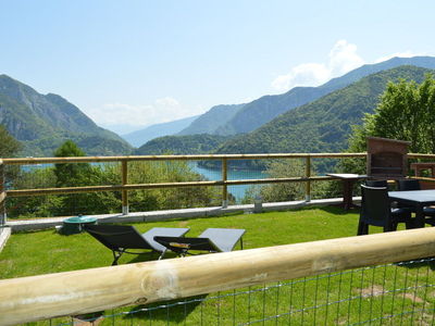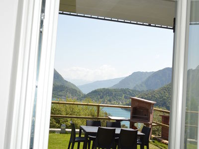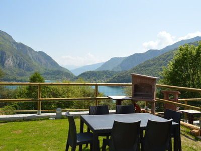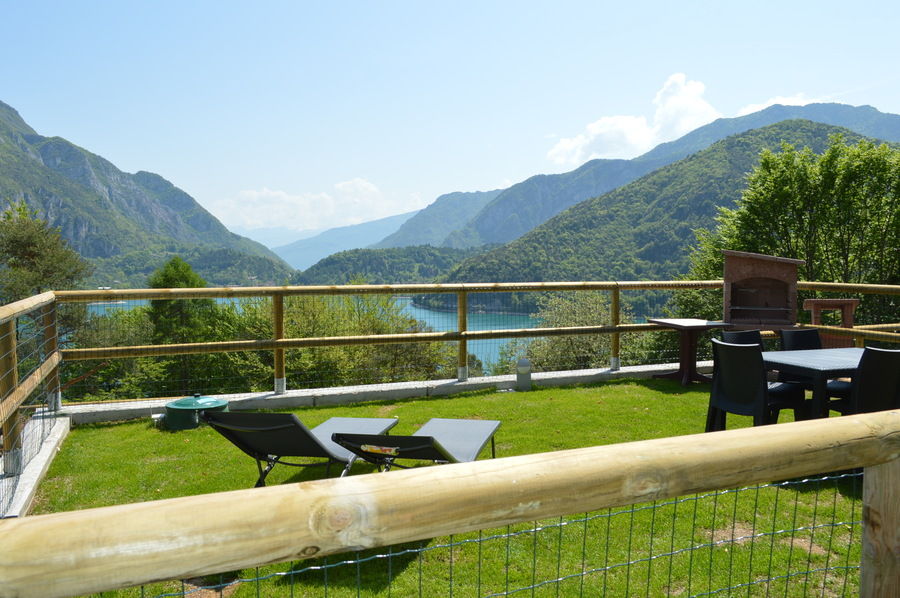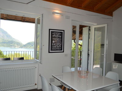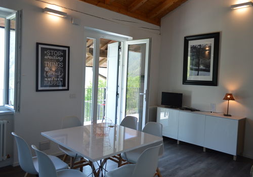PT/1°P - ca. 65 mq - 5/7 pers. - 1 stanza a due letti - 1 stanza matrimoniale - soggiorno con angolo cottura e divano letto doppio, TV Sat , lavatrice, lavastoviglie, microonde, wifi- bagno con doccia, phon - giardino o terrazza con mobili, vista lago - grill - parcheggio privato.