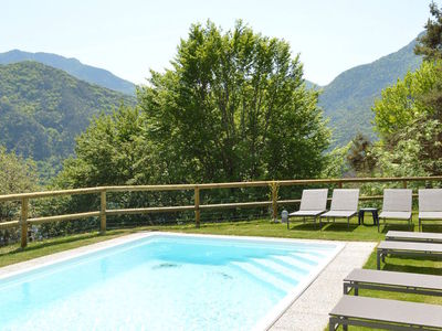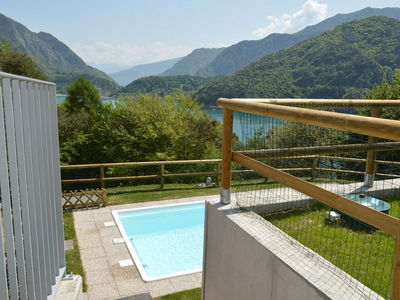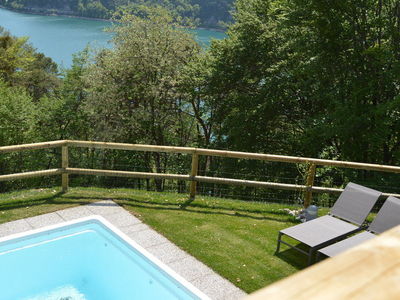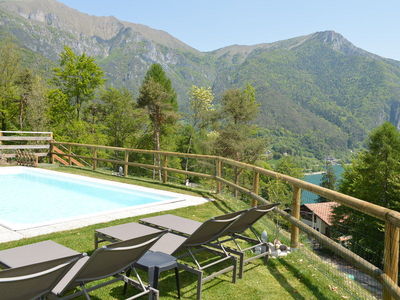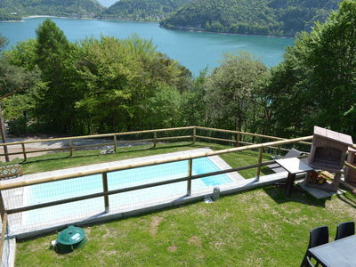 La casa si trova in collina, in posizione tranquilla e soleggiata, con bellissima vista lago . E' composta da 4 appartamenti completamente ristrutturati nel 2018, , due al piano terra con giardino privato e recintato e due al primo piano con terrazza di 14 M2. PISCINA